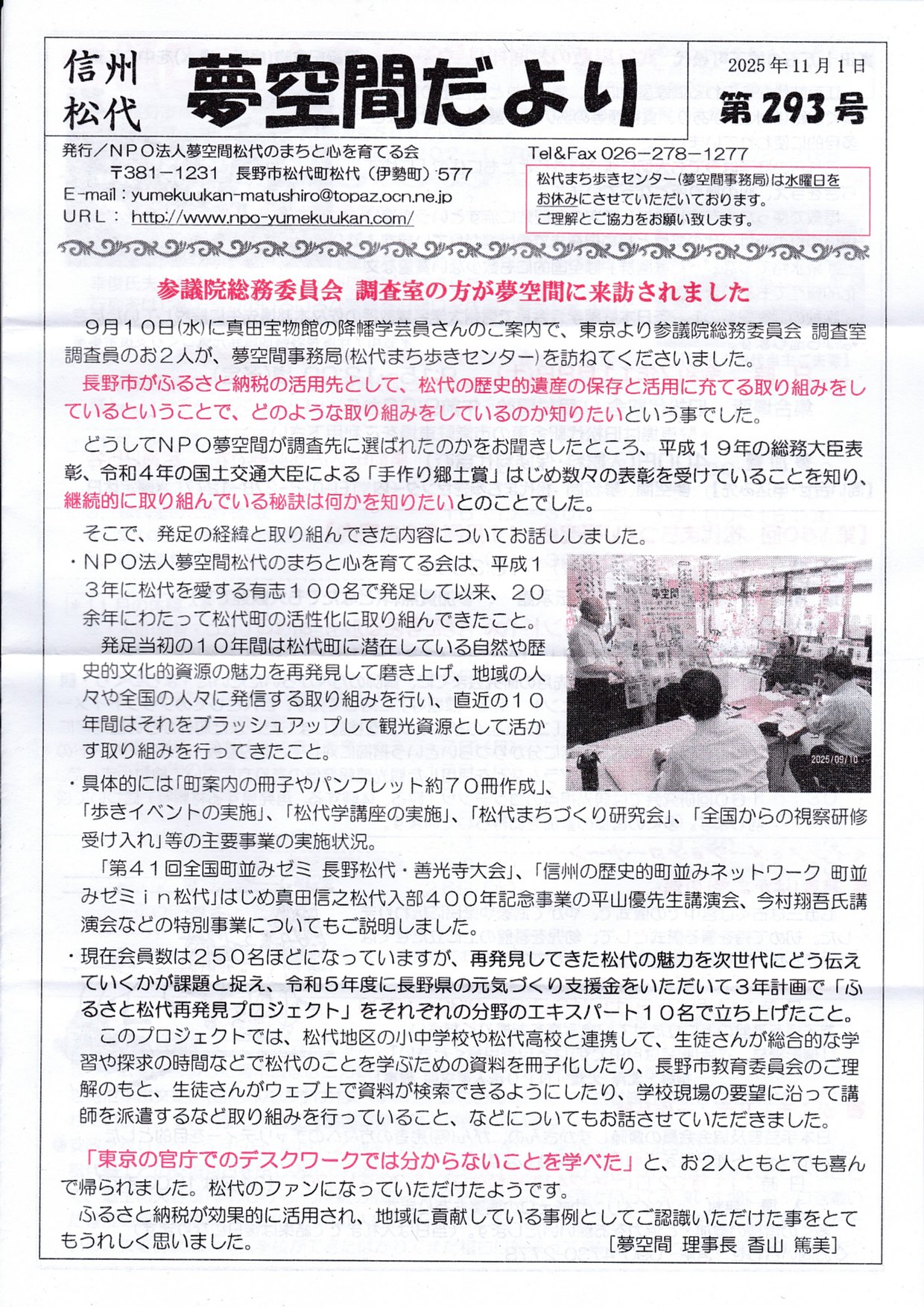 夢空間だより・夢空間だより 第294号 2026年1月1日・夢空間だより 第293号 2025年11月1日・夢空間だより 第292号 2025年10月1日・夢空間だより 第290号 2025年8月1日・夢空間だより 第289号 2025年7月1日・夢空間だより 第288号 2025年6月1日・夢空間だより 第287号 2025年5月1日・夢空間だより 第286号 2025年4月1日・夢空間だより 第285号 2025年3月1日・夢空間だより 第284号 2025年2月1日・夢空間だより 第283号 2025年1月1日・夢空間だより 第282号 2024年12月1日・夢空間だより 第281号 2024年11月1日・夢空間だより 第280号 2024年10月1日・夢空間だより 第279号 2024年9月1日・夢空間だより 第278号 2024年8月1日・夢空間だより 第277号 2024年7月1日・夢空間だより 第276号 2024年6月1日・夢空間だより 第275号 2024年5月1日・夢空間だより 第274号 2024年4月1日・夢空間だより 第273号 2024年3月1日・夢空間だより 第272号 2024年2月1日・夢空間だより 第271号 2024年1月1日・夢空間だより 第270号 2023年12月1日・夢空間だより 第269号 2023年11月1日・夢空間だより 第268号 2023年10月1日・夢空間だより 第267号 2023年9月1日・夢空間だより 第266号 2023年8月1日・夢空間だより 第265号 2023年7月1日・夢空間だより 第264号 2023年6月1日・夢空間だより 第263号 2023年5月1日・夢空間だより 第262号 2023年4月1日・夢空間だより 第261号 2023年3月1日・夢空間だより 第260号 2023年2月1日・夢空間だより 第259号 2023年1月1日・夢空間だより 第258号 2022年12月1日・夢空間だより 第257号 2022年11月1日・夢空間だより 第256号 2022年10月1日・夢空間だより 第255号 2022年9月1日・夢空間だより 第254号 2022年8月1日・夢空間だより 第253号 2022年7月1日・夢空間だより 第252号 2022年6月1日・夢空間だより 第251号 2022年5月1日・夢空間だより 第250号 2022年4月1日・夢空間だより 第249号 2022年3月1日・夢空間だより 第248号 2022年2月1日・夢空間だより 第247号 2022年1月1日・夢空間だより 第246号 2021年12月1日・夢空間だより 第245号 2021年11月1日・夢空間だより 第244号 2021年10月1日・夢空間だより 第243号 2021年09月1日・夢空間だより 第242号 2021年08月1日・夢空間だより 第241号 2021年07月1日・夢空間だより 第240号 2021年06月1日・夢空間だより 第239号 2021年05月1日・夢空間だより 第238号 2021年04月1日・夢空間だより 第237号 2021年03月1日・夢空間だより 第236号 2021年02月1日・夢空間だより 第235号 2021年1月1日・夢空間だより 第234号 2020年12月1日・夢空間だより 第233号 2020年11月1日・夢空間だより 第232号 2020年10月1日・夢空間だより 第231号 2020年9月1日・夢空間だより 第230号 2020年8月1日・夢空間だより 第229号 2020年7月1日・夢空間だより 第228号 2020年6月1日・夢空間だより 第227号 2020年5月1日・夢空間だより 第226号 2020年4月1日・夢空間だより 第201号 2018年3月1日・夢空間だより 第174号 2015年12月1日・夢空間だより 第167号 2015年5月1日・夢空間だより 第165号 2015年3月1日