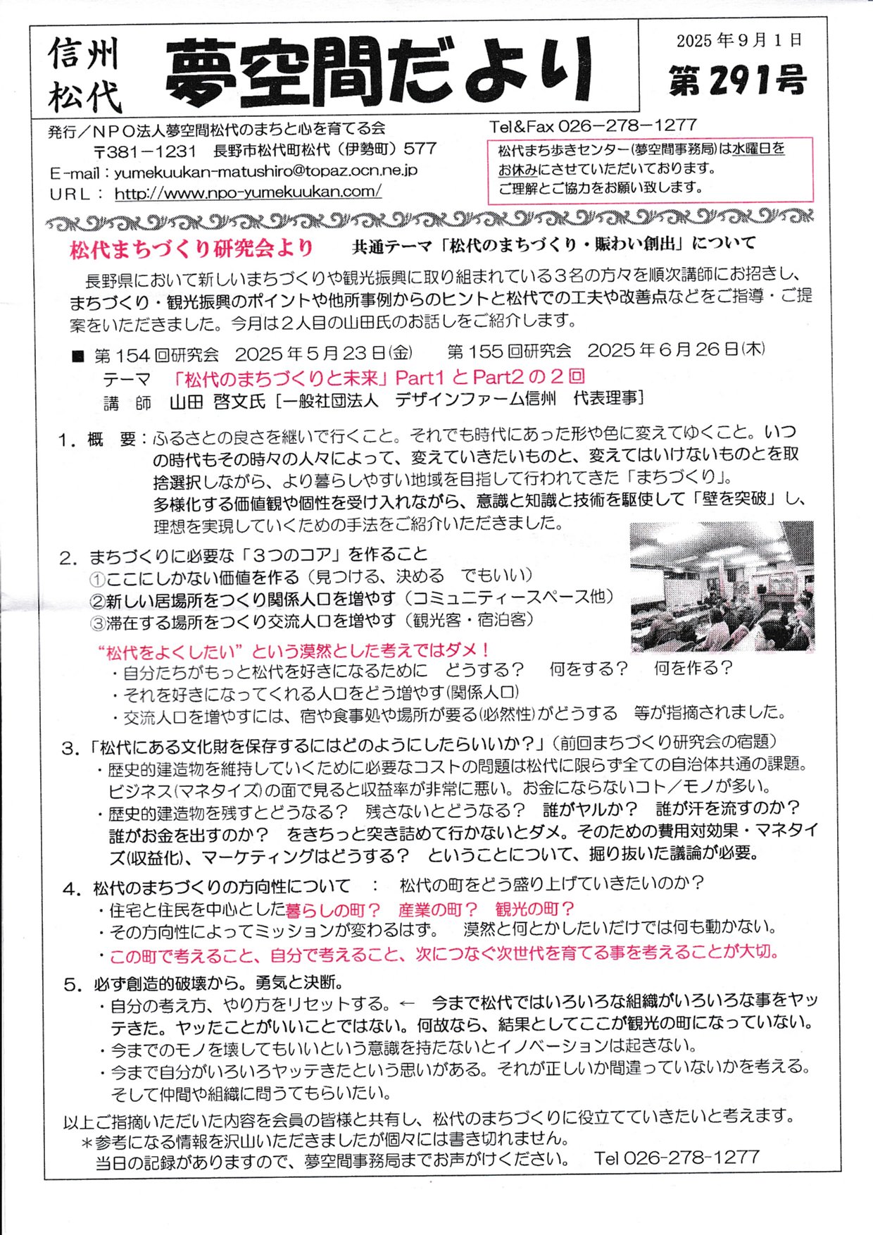 事業内容 > 活動報告 > 年度別活動報告夢空間だより 第291号 2025年9月1日